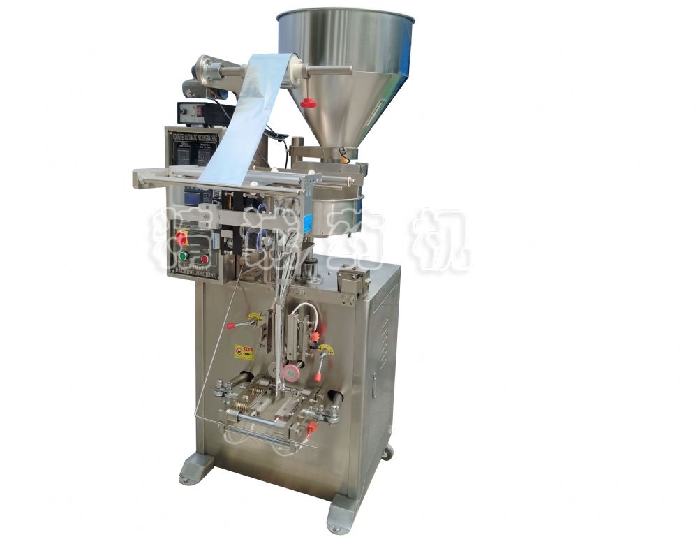 本機具有自動完成制袋、計量、充填、封合、分切、計數(shù)、打印批號等功能,并采用先進的微電腦控制器,驅動步進電機控制袋長及商標定位。本機性能穩(wěn)定、調(diào)整方便、檢測準確,智能控制形成誤差極小。本機可按物料的不同,可配制相應的顆粒、多料、液體、粉劑、醬體的下料機構。增加附件可完成日期打印、振蕩下料,易撕口等功能。