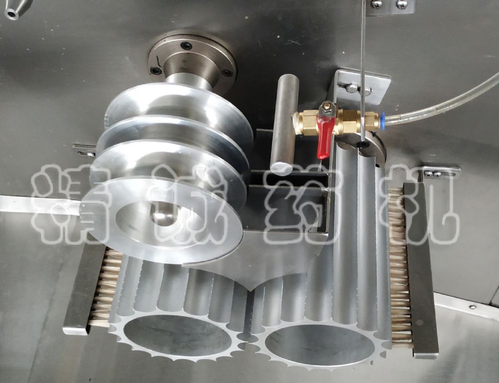 5、用酒精點(diǎn)滴藥條,制丸刀外側(cè)裝有毛刷,可解決粘刀現(xiàn)象,酒精裝在出條機(jī)構(gòu)的方箱內(nèi),通過球閥調(diào)節(jié)酒精量的大小。