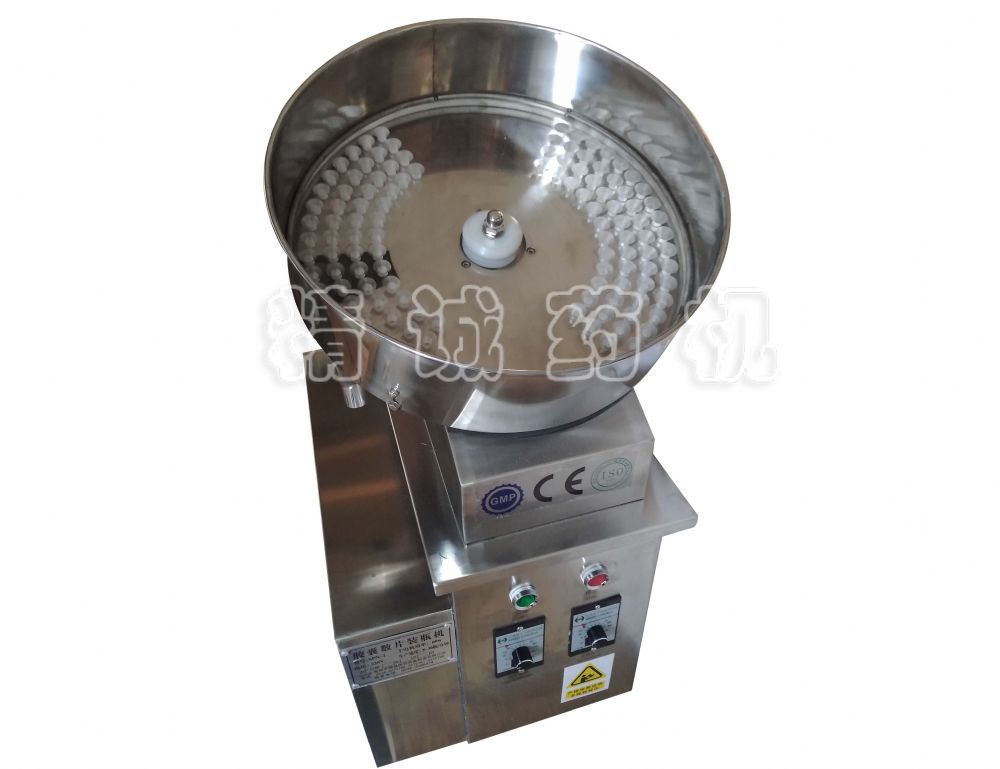 SPN膠囊數(shù)粒裝瓶機(jī)又名單盤膠囊數(shù)粒裝瓶機(jī),該機(jī)體積小、重量輕、噪音小、計(jì)數(shù)準(zhǔn)確、操作簡便,保養(yǎng)維修簡單。藥品接觸部位采用不銹鋼制作,保證了包裝物品的潔凈,符合GMP要求;是對膠囊等藥品或食品進(jìn)行計(jì)數(shù)、裝瓶的較理想專用設(shè)備。該機(jī)采用電磁振動數(shù)片,瓶未到下料口處時數(shù)片盤不轉(zhuǎn)動,藥瓶放置下料口處時,電機(jī)驅(qū)動數(shù)片盤轉(zhuǎn)動使藥物自動進(jìn)入瓶中;更換不同規(guī)格型號計(jì)數(shù)盤方便快捷,無需作其它調(diào)節(jié)。本機(jī)是目前計(jì)數(shù)機(jī)械中較小型、美觀且經(jīng)濟(jì)適用的計(jì)數(shù)裝瓶、裝袋設(shè)備。