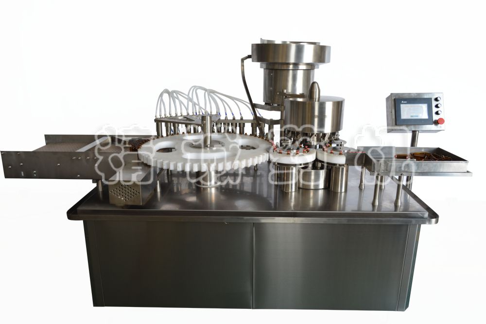 本機(jī)是灌裝、軋蓋二機(jī)合一的高速灌封機(jī),適用于各種10ml~30ml玻璃瓶的液體灌裝和軋蓋。機(jī)器采用潛入式灌裝機(jī)構(gòu),灌裝時(shí),灌裝頭自動伸入瓶內(nèi),液體無溢出;機(jī)器采用高精度計(jì)量機(jī)構(gòu),不銹鋼單向閥門,灌裝計(jì)量調(diào)整方便;組合式灌裝管路及灌裝組件,拆卸、消毒十分方便;根據(jù)不同的蓋子,軋蓋力大小可以調(diào)整,保證瓶蓋外觀封口美觀;采用變頻調(diào)整系統(tǒng),能方便地適應(yīng)各種不同規(guī)格的瓶子及不同粘度液體灌裝的不同需求。
